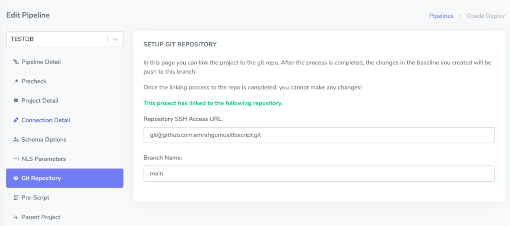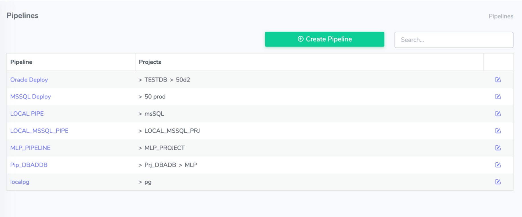A pipeline must be created to run and version DDL queries via Executor. The pipeline created on this page includes the projects on the Project page. The executed DDL queries are deployed to environments sequentially and versioned. Pipeline management is important in this regard. Each pipeline can cover a single project, or it can be created by adding multiple projects sequentially. The baselines to be created are also managed here.