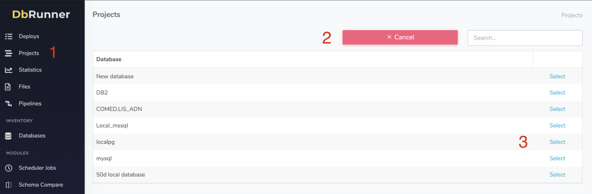 After adding databases to the DbRunner application, you can create projects for the relevant databases and schemas. It's important to remember that each project corresponds to a schema. After creating a new project, you can assign different permissions to each user under this project and manage your environments.