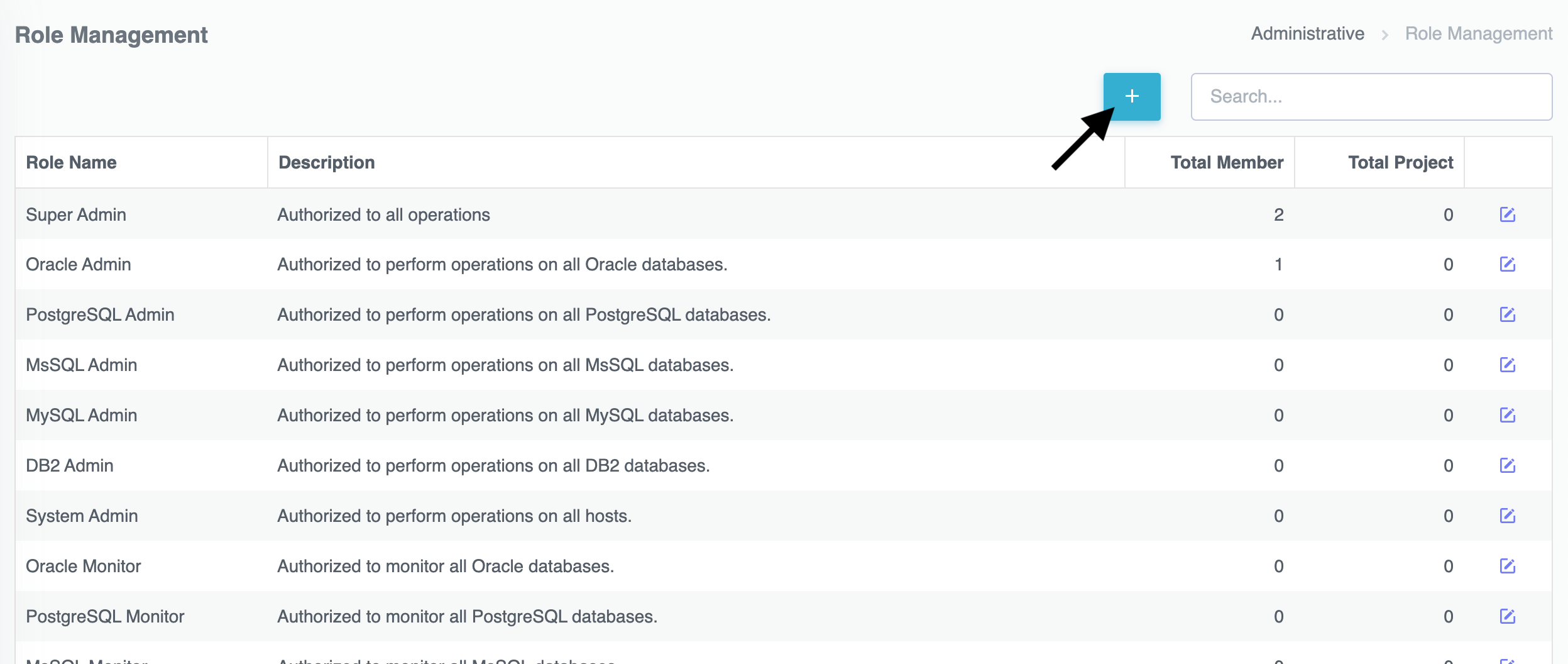 To create a new role, go to the Role Management page under the Administrative heading and click the "+" button.
