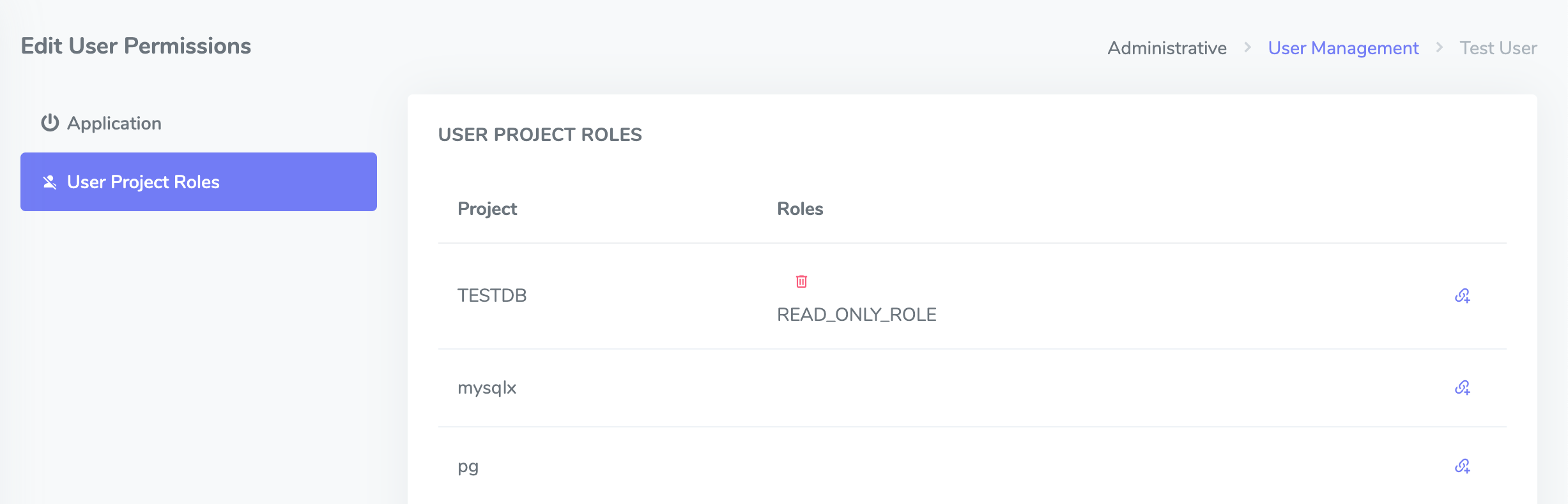 Under the User Project Roles tab, you can view and edit which roles the user holds in each project.