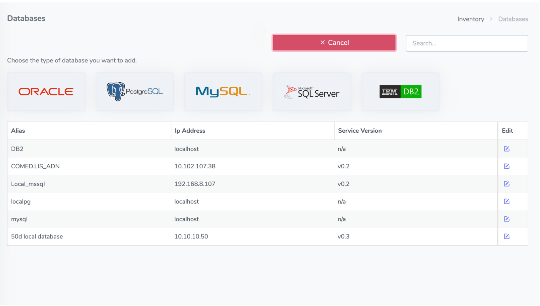 You can add Oracle, PostgreSQL, MSSQL, DB2, and MySQL databases to the Executor and run your queries. To add a database, select the database from the Databases tab in the left menu and complete the process.